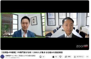 支援した企業の事例として、地方の小規模法人が注目を集め、PR開始1か月後にはテレビの夕方ニュースで紹介。その後、読売新聞・産経新聞・ラジオなどに次々と取り上げられ、最終的にはYahoo!ニュースやNHK全国放送にも出演した事例、他には人事コンサルタントや中小企業診断士などが次々と10冊以上の雑誌に掲載が決まった事例などがある。